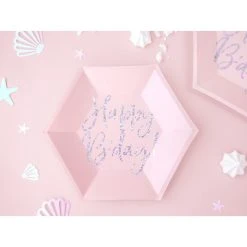 Lot De 6 Assiettes Carton Rose Happy Birthday Iridescent 20 Cm