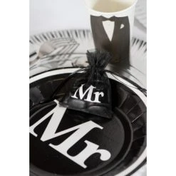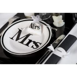 Lot De 10 Assiettes Carton Mr & Mrs Noires D 22,5 Cm
