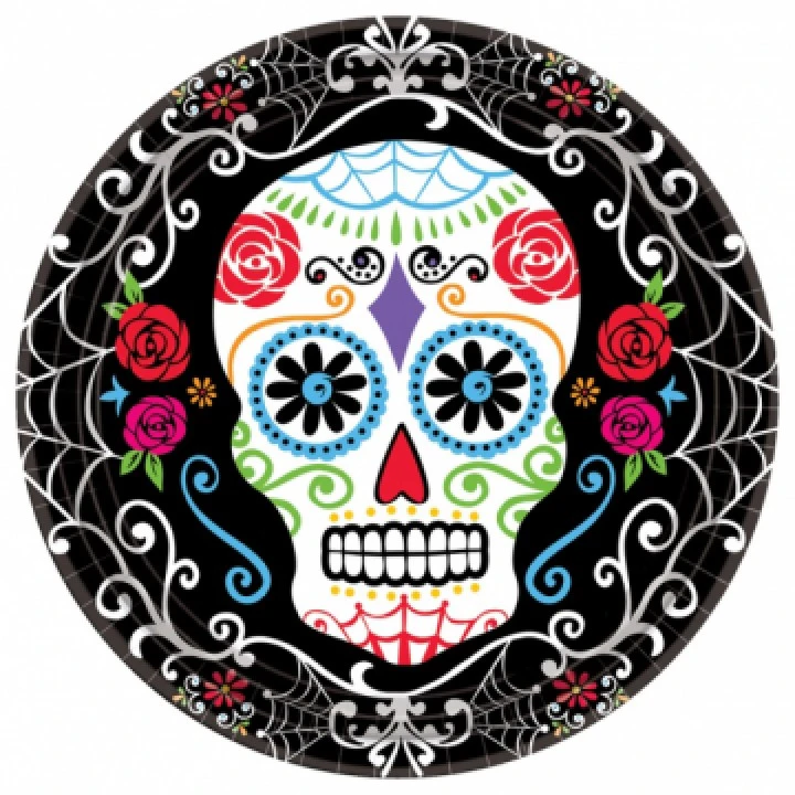 Ce lot de 10 assiettes jetables Jour des morts Halloween D 23 cm sera parfait pour votre table ou buffet Halloween . Ces belles assiettes colorĂ©es en carton ont le fond noir et sont dĂ©corĂ©es de motifs mexicains avec arabesques et roses colorĂ©es entourant une tĂŞte de mort Ă©galement peinte avec diffĂ©rentes couleurs. Ces assiettes jetables sont en carton et ont un diamètre de 23 cm. Ces assiettes en carton , très joliment colorĂ©es, seront idĂ©ales pour servir sans crainte de casse. Elles participeront Ă©galement Ă la dĂ©coration de votre table ou buffet Halloween et avec cette vaisselle jetable , plus de soucis après la fĂŞte. Choisir ce lot de 10 assiettes jetables Jour des morts Halloween D 23 cm, c’est faciliter votre organisation et assurer une dĂ©coration Halloween mexicaine très tendance.
