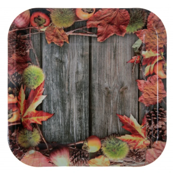 Ce lot de 10 assiettes jetables Automne n carton 23 x 23 cm sera parfait pour un buffet ou table thème Automne. Ces belles assiettes Automne sont imprimĂ©es avec un fond imitant des planches en bois brut et sur le pourtour des motifs vĂ©gĂ©taux d’automne, Ă savoir feuilles d’automne colorĂ©es, pommes de pin, bogues de châtaigne vertes et branchages, le tout dans une impression qui donnent du relief au vĂ©gĂ©taux. Ces jolies assiettes Automne sont en carton et font 23 x 23 cm. Ces superbes assiettes jetables colorĂ©es seront idĂ©ales pour votre prochaine fĂŞte, dĂ©jeuner ou dĂ®ner d’Automne et participeront Ă la dĂ©coration de votre table ou buffet. Avec cette vaisselle jetable il n’y aura pas de soucis pendant et après la fĂŞte. Choisir ce lot de 12 assiettes jetables Automne en carton 23 x 23 cm, c’est faciliter l’organisation de votre prochaine soirĂ©e thème Automne et assurer une dĂ©coration vĂ©gĂ©tale tout Ă fait tendance.