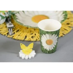 Ce lot de 10 gobelets en carton marguerite 9,7 x 7,5 cm sera idéal pour votre déco de table ou buffet de Pâques. Ces beaux gobelets jetables sont en carton impression gazon bien vert et ornés de chaque côté par une grande fleur de marguerite blanche avec le cœur jaune. Pour faciliter votre organisation et créer une belle décoration de table ou buffet de Pâques, vous recherchez des gobelets en carton jetables qui soient colorés et frais, choisissez ce magnifique lot de 10 gobelets en carton marguerite 9,7 x 7,5 cm.