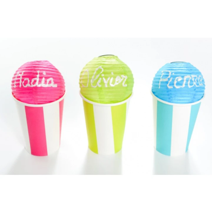 Ce lot de 10 gobelets en carton turquoise Ă rayures blanches 9,7 x 7,5 cm sera idĂ©al pour votre dĂ©co de table de mariage , d’anniversaire , de dĂ©jeuner , de dĂ®ner , un mariage , un bar Ă bonbon, une baby-shower ou un baptĂŞme . Ces beaux gobelets sont en carton turquoise avec des rayures blanches verticales. Ces superbes gobelets en carton sont disponibles dans 4 coloris. Pour faciliter votre organisation et crĂ©er une belle dĂ©coration de table chic , vous recherchez des gobelets en carton qui soient colorĂ©s et tendances, choisissez ce magnifique lot de 10 gobelets en carton turquoise Ă rayures blanches 9,7 x 7,5 cm .