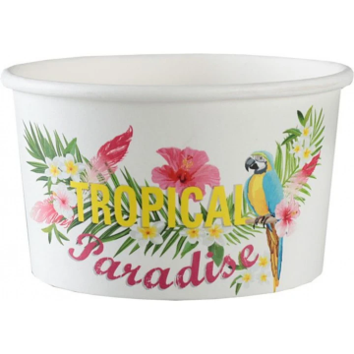 Ce Lot de 10 ramequins Tropical 8,5 x 5,5 cm sera parfait pour un buffet ou table de fĂŞte thème Les tropique, Jungle, HawaĂŻ.  Ces jolis ramequins sont blancs imprimĂ©s avec des perroquets colorĂ©s perchĂ©s sur une couronne de vĂ©gĂ©tation tropicale avec des fleurs d’hibiscus roses et blanches et au centre l’inscription en rose et jaune Tropical Paradise.  Ces ramequins jetables seront pratiques et en plus participeront Ă la dĂ©coration de votre table ou buffet thème les Tropiques, HawaĂŻ ou Jungle. Choisir ce Lot de 10 ramequins Tropical 8,5 x 5,5 cm, c’est assurer une dĂ©coration thème Tropiques, Jungle ou HawaĂŻ tendance.