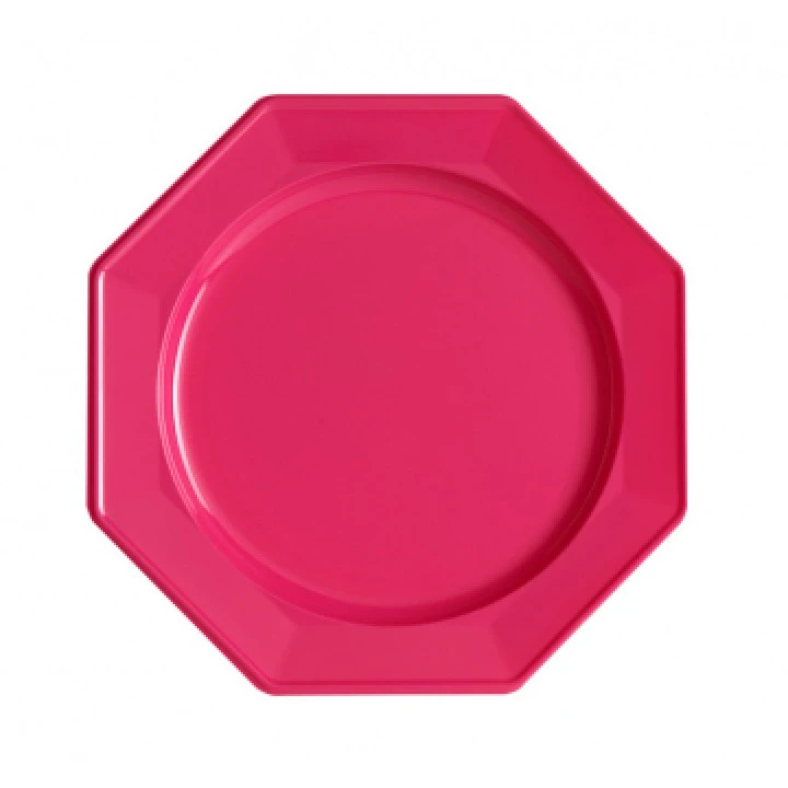 Ce lot de 12 assiettes octogonales jetables fuschia MM conviendra pour toutes vos fĂŞtes, un mariage, un dĂ®ner, un barbecue ou une soirĂ©e Ă thème. Ces assiettes octogonales en plastique solide, Ă la forme originale, ont un diamètre de 24  cm. Ces assiettes jetables se dĂ©clinent en 21  coloris. Ces jolies assiettes en plastique fuschia brillant, coordonnĂ©es avec des assiettes d’une autre couleur ou taille et assorties Ă votre nappe et dĂ©co de table, feront merveille. Nos conseillers de vente associent souvent ces assiettes avec de la vaisselle, des nappes ou des serviettes dans des tons gris, lilas, chocolat ou vert pistache. Ces assiettes jetables, en plus d’avoir une couleur superbe et de permettre une belle dĂ©coration de table, vous faciliteront la vie car après la fĂŞte pas de vaisselle. Quel bonheur! Quel que soit le thème de votre fĂŞte, vous voulez de la vaisselle jetable et une dĂ©coration de table chic et pratique, c’est ce lot de 12 assiettes octogonales jetables fuschia MM, quÂ’il faut choisir.