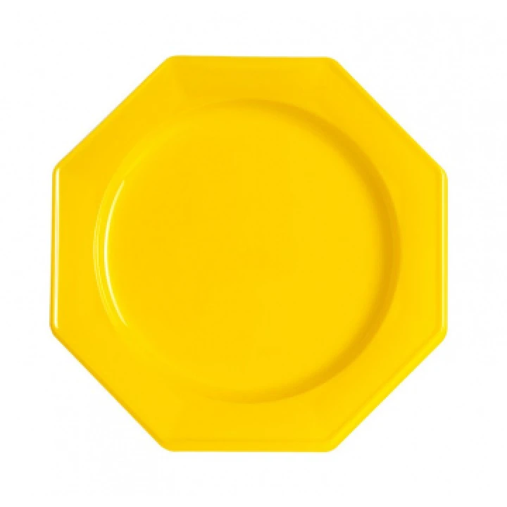 Ce lot de 12 assiettes octogonales  jetables  jaunes GM conviendra pour toutes vos fĂŞtes, un mariage, un dĂ®ner, un barbecue ou une soirĂ©e Ă thème. Ces grandes assiettes octogonales en plastique solide, Ă la forme originale, ont un diamètre de 31 cm. Ces assiettes jetables se dĂ©clinent en 21 coloris. Ces jolies assiettes en plastique jaune brillant, coordonnĂ©es avec des assiettes d’une autre couleur ou taille et assorties Ă votre nappe et dĂ©co de table, feront merveille. Nos conseillers de vente associent souvent ces assiettes avec de la vaisselle, des nappes ou des serviettes dans des tons blancs, gris ou vert anis. Ces assiettes jetables, en plus d’avoir une couleur superbe et de permettre une belle dĂ©coration de table, vous faciliteront la vie car après la fĂŞte pas de vaisselle. Quel bonheur! Quel que soit le thème de votre fĂŞte, vous voulez de la vaisselle jetable et une dĂ©coration de table chic et pratique, c’est ce lot de 12 assiettes octogonales jetables jaunes GM, quÂ’il faut choisir.