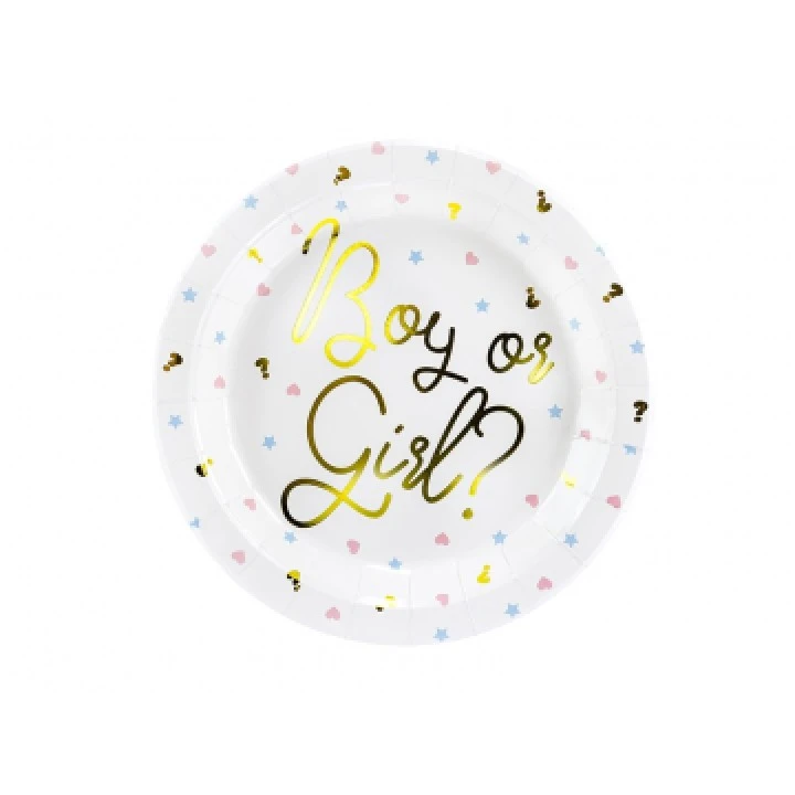 Ce superbeLot de 6 assiettes en carton gender reveal party 200 ml est idĂ©al pour crĂ©er une jolie dĂ©co de table ou buffet de gender reveal party,de Baby shower. Ces belles assiettess en carton de 23 cm de diamètre sont blanches avec des motifs coeurs or ou colorĂ©s et des points d’interrogation or tout comme l’ex pression Boy or Girl?. Ces assiettes jetables seront très pratiques et feront sur votre table ou buffet une jolie dĂ©co pastel mystĂ©rieuse. Vous recherchez des assiettes jetables pour gender reveal party ou baby shower, c’est ce magnifique Lot de 6 assiettes en carton gender reveal party 23 cm qu’il vous faut choisir.