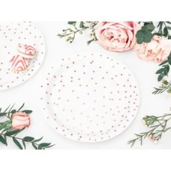 Ce superbeLot de 6 assiettes en carton blanc pois rose gold 18 cm est idĂ©al pour crĂ©er une dĂ©co de table ou buffet de fĂŞte thème rose gold. Ces belles assiettes en carton blanc sont ornĂ©es de petits pois rose gold. Ces assiettes originales seront très pratiques et mĂŞlĂ©e Ă d’autres assiettes en carton feront sur votre table une dĂ©co chic et tendance. Vous recherchez desassiettes en carton originales, c’est ce magnifique lot de 6 assiettes en carton blanc pois rose gold 18 cmqu’il vous faut choisir.