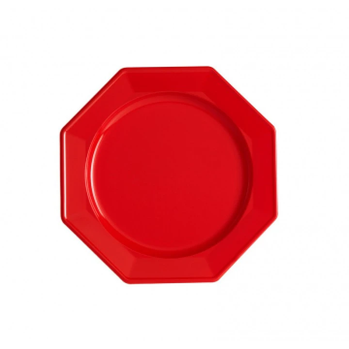 Ce lot de 8 assiettes à dessert plastiques réutilisables octogonales rouge 16,5 cm conviendra pour toutes vos fêtes, un mariage, un dîner, un barbecue ou une soirée à thème. Ces assiettes à dessert octogonales en plastique solide, à la forme originale, ont un diamètre de 16,5 cm. Ces assiettes plastiques réutilisables se déclinent en 21 coloris. Ces jolies assiettes en plastique rouge brillant, coordonnées avec des assiettes d’une autre couleur ou taille et assorties à votre nappe et déco de table, feront merveille. Nos conseillers de vente associent souvent ces assiettes avec de la vaisselle, des nappes ou des serviettes dans des tons blancs, roses ou vert anis. Ces assiettes plastiques réutilisables, en plus d’avoir une couleur superbe et de permettre une belle décoration de table, vous faciliteront la vie car après la fête pas de vaisselle. Quel bonheur! Quel que soit le thème de votre fête, vous voulez de la vaisselle plastique réutilisable et une décoration de table chic et pratique, c’est ce lot de 8 assiettes à dessert plastiques réutilisables octogonales rouge 16,5 cm, quil faut choisir.