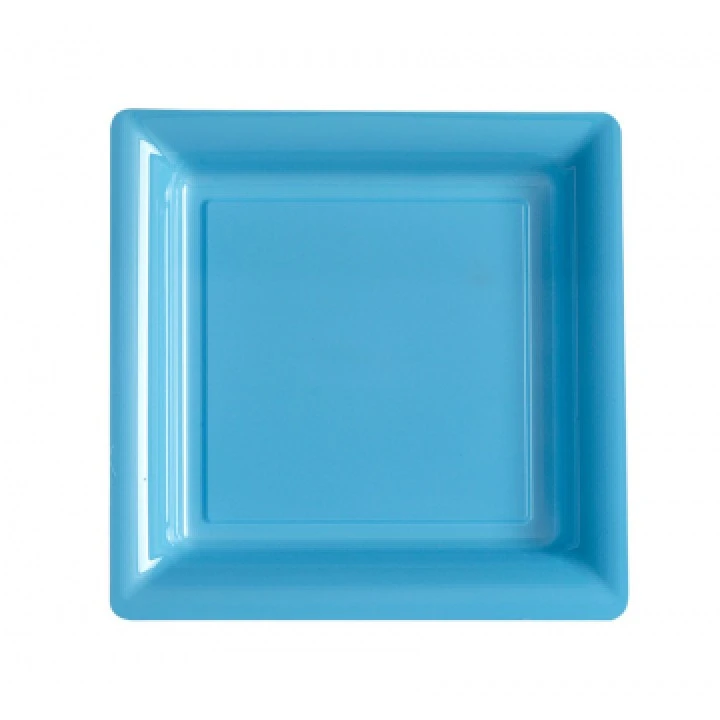 Ce lot de 8 assiettes carrées réutilisables bleu ciel 16,5 cm conviendra pour toutes vos fêtes, un mariage, un dîner, un barbecue ou une soirée à thème. Ces assiettes à dessert carrées en plastique solide ont une dimension de 16,5 x 16,5 cm et une hauteur de 2,20 cm. Ces assiettes réutilisables se déclinent en 21 coloris. Ces jolies assiettes en plastique bleu ciel brillant, coordonnées avec des assiettes d’une autre couleur ou taille et assorties à votre nappe et déco de table, feront merveille. Nos conseillers de vente associent souvent ces assiettes avec de la vaisselle, des nappes ou des serviettes dans des tons gris, blancs ou taupe par exemple. Ces assiettes réutilisables, en plus d’avoir une couleur superbe et de permettre une belle décoration de table, vous faciliteront la vie car après la fête pas de vaisselle. Quel bonheur ! Quel que soit le thème de votre fête, vous voulez de la vaisselle réutilisable et une décoration de table chic et pratique, c’est ce lot de 8 assiettes carrées rétuilisables bleu ciel 16,5 cm, quil faut choisir.
