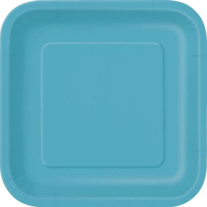 Ce lot de 8 assiettes carrées réutilisables turquoise16,5 cm conviendra pour toutes vos fêtes, un mariage, un dîner, un barbecue ou une soirée à thème. Ces assiettes à dessert carrées en plastique solide ont une dimension de 16,5 x 16,5 cm et une hauteur de 2,20 cm. Ces assiettes réutilisables se déclinent en 21 coloris. Ces jolies assiettes en plastique turquoise brillant, coordonnées avec des assiettes d’une autre couleur ou taille et assorties à votre nappe et déco de table, feront merveille. Nos conseillers de vente associent souvent ces assiettes avec de la vaisselle, des nappes ou des serviettes dans des tons gris, blancs ou taupe par exemple. Ces assiettes réutilisables, en plus d’avoir une couleur superbe et de permettre une belle décoration de table, vous faciliteront la vie car après la fête pas de vaisselle. Quel bonheur ! Quel que soit le thème de votre fête, vous voulez de la vaisselle réutilisable et une décoration de table chic et pratique, c’est ce lot de 8 assiettes carrées rétuilisables turquoise 16,5 cm, quil faut choisir.