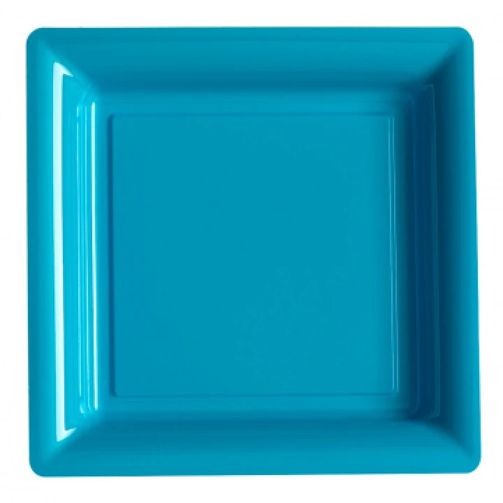 Ce lot de 8 assiettes carrées plastiques réutilisables turquoises 30,5 cm conviendra pour toutes vos fêtes, un mariage, un dîner, un barbecue ou une soirée à thème. Ces grandes assiettes carrées en plastique solide ont une dimension de 30,5 x 30,5 cm et une hauteur de 3,5 cm. Ces assiettes plastiques réutilisables se déclinent en 21 coloris. Ces jolies assiettes en plastique framboise brillant, coordonnées avec des assiettes d’une autre couleur ou taille et assorties à votre nappe et déco de table, feront merveille. Nos conseillers de vente associent souvent ces assiettes avec de la vaisselle, des nappes ou des serviettes dans des tons blancs, turquoises ou rouges pour Noël par exemple. Ces assiettes plastiques réutilisables, en plus d’avoir une couleur superbe et de permettre une belle décoration de table, vous faciliteront la vie car après la fête pas de vaisselle. Quel bonheur! Quel que soit le thème de votre fête, vous voulez de la vaisselle plastique réutilisable et une décoration de table chic et pratique, c’est ce lot de 8 assiettes carrées plastiques réutilisables turquoise 30,5 cm, quil faut choisir.
