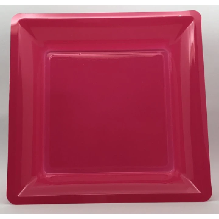 Ce lot de 8 assiettes carrées réutilisables fuschia 21,5 cm conviendra pour toutes vos fêtes, un mariage, un dîner, un barbecue ou une soirée à thème. Ces assiettes carrées en plastique solide ont une dimension de 21,5 x 21,5 cm et une hauteur de 2,2 cm. Ces assiettes réutilisables se déclinent en 21 coloris. Ces jolies assiettes en plastique fuschia brillant, coordonnées avec des assiettes d’une autre couleur ou taille et assorties à votre nappe et déco de table, feront merveille. Nos conseillers de vente associent souvent ces assiettes avec de la vaisselle, des nappes ou des serviettes dans des tons gris, blancs ou rouges pour Noël par exemple. Ces assiettes réutilisables, en plus d’avoir une couleur superbe et de permettre une belle décoration de table, vous faciliteront la vie car après la fête pas de vaisselle. Quel bonheur! Quel que soit le thème de votre fête, vous voulez de la vaisselle réutilisable et une décoration de table chic et pratique, c’est ce lot de 8 assiettes carrées réutilisables fuschia 21,5 cm, quil faut choisir.