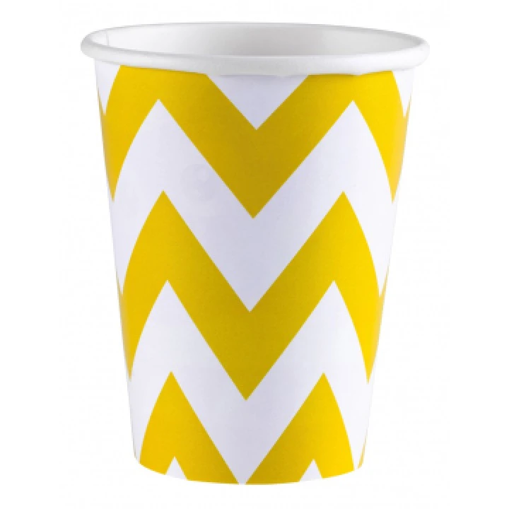 Ce lot de 8 gobelets en carton Chevron jaune 26,6 cl sera idĂ©al pour votre  table ou un buffet d‘anniversaire, brunch de mariage ou entre amis, un dĂ©jeuner ou dĂ®ner au jardin, un bar Ă bonbon. Ces beaux gobelets sont en carton blanc ornĂ© de chevrons jaunes. Ces superbes gobelets en carton sont disponibles dans 5 coloris. Pour faciliter votre organisation et crĂ©er une belle dĂ©coration de table ou de buffet chic, vous recherchez des gobelets en carton qui soient colorĂ©s et tendances, choisissez ce magnifique lot de 8 gobelets en carton Chevron jaune 26,6 cl.