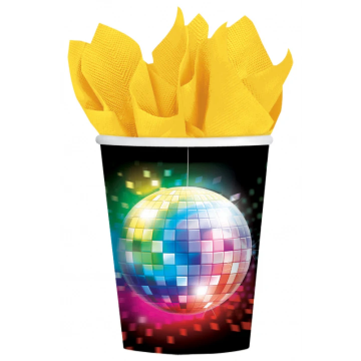 Ce lot de 8 gobelets jetables Disco 70’s en carton sera parfait pour une soirĂ©e Disco. Ces  beaux gobelets Disco ,sont imprimĂ©s avec une boule Ă facettes multicolores dont les Ă©clats se reflètent sur un fond bleu, rose, vert et noir. Ces gobelets disco sont en carton et ont une contenance de 26,6 cl.Ces gobelets jetables multicolores seront idĂ©als pour servir les boissons Ă vos amis lors de votre prochaine soirĂ©e Fièvre du Samedi soir.Ils participeront Ă©galement Ă la dĂ©coration de votre table ou  buffetet avec cette vaisselle jetable, pas de soucis après la fĂŞte . Choisir ce lot de 8 gobelets jetables Disco 70’s en carton, c’est faciliter l’organisation de votre prochaine soirĂ©e seventies et assurer une dĂ©coration originale pour votre soirĂ©e disco, .