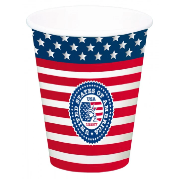 Ce lot de 8 gobelets jetables USA Party XL sera parfait pour une fĂŞte, barbecue ou Garden party thème USA. Ces jolies gobelets USA Party XL sont en plastique imprimĂ©s en bleu blanc rouge comme le drapeau amĂ©ricain. Ces beaux gobelets jetables seront idĂ©als pour votre prochaine fĂŞte thème USA et participeront Ă la dĂ©coration de votre table ou buffet. Avec cette vaisselle jetable il n’y aura pas de soucis pendant et après la fĂŞte. Choisir ce lot de 8 gobelets jetables USA Party XL, c’est faciliter l’organisation de votre fĂŞte ou Garden party.