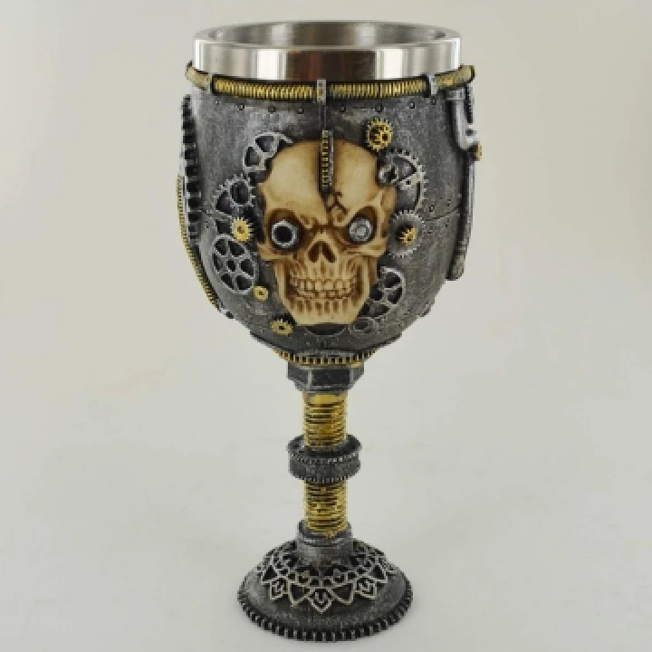 Pour votre déco ou buffet d’ Halloween, ce Verre à pied crâne Steampunk Halloween 8,5 x 8,5 x 19,5 cm est idéal. Ce verre à pied en résine et métal vieilli et cuivre mesure 8,5 x 8,5 x 19,5 cm et est orné d’un crâne, d’une horloge et de petites roues de mécanismes de montre couleur cuivre. Posé dans votre décoration Halloween, sur votre buffet d’ Halloween, ce Verre à pied crâne Steampunk Halloween 8,5 x 8,5 x 19,5 cm fera, à coup sûr, de l’effet sur vos invités le soir d’ Halloween.